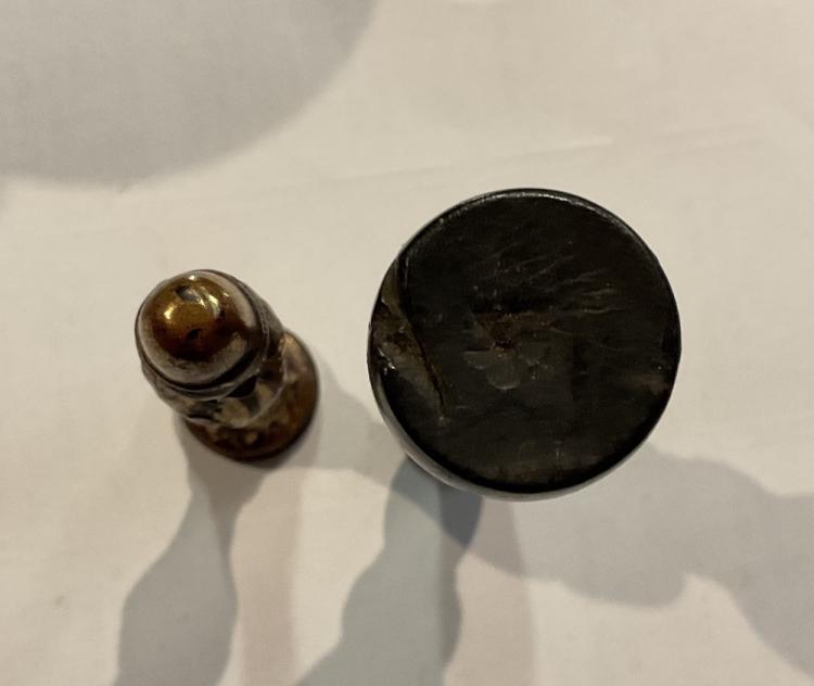 Lot 1108 of 2131: A group of wooden seals including a lignum vitae example, a gilt metal example also a travelling inkwell (8).