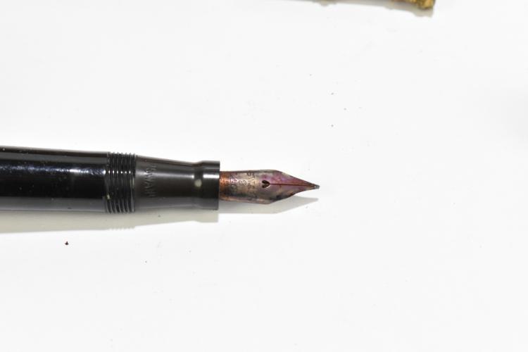Lot 1109 of 2131: A group of pens and pencils including a Wyvern no.60, a Swan Mabie Todd & Co Ltd black bodied pen, a black bodied pen, yellow metal propelling pencils, etc.
