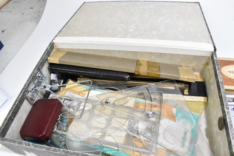 Lot 1127 of 2131: An assortment of collectors' items including draughtsman's set, various pen nibs, two brass RAF badges, cased part set of sovereign scales, etc.