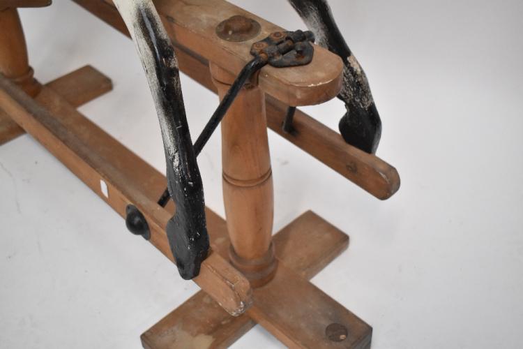 Lot 1190 of 2131: A vintage dappled grey rocking horse raised on a trestle base, length approx 115cm.
