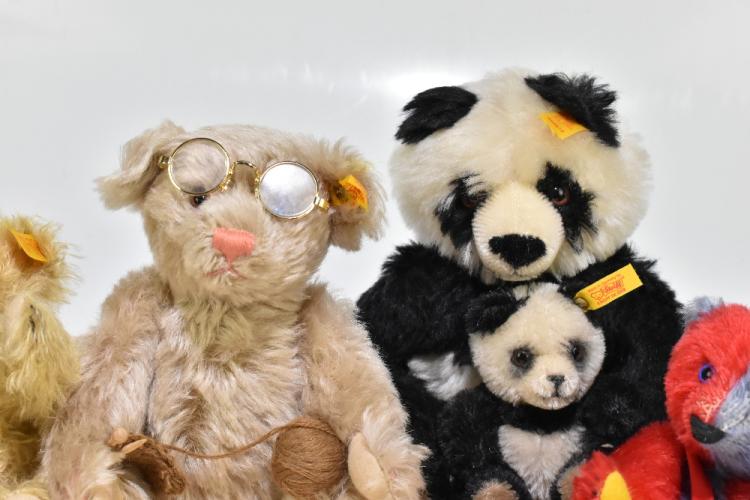 Lot 1204 of 2131: STEIFF; four small size teddy bears and a Steiff panda bear, three with original Steiff bags (5).