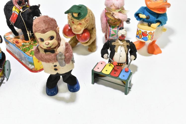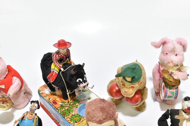 Lot 1220 of 2131: A collection of clockwork toys including Japanese examples, various models including Wild West Rodeo, Daffy Duck, etc (11).