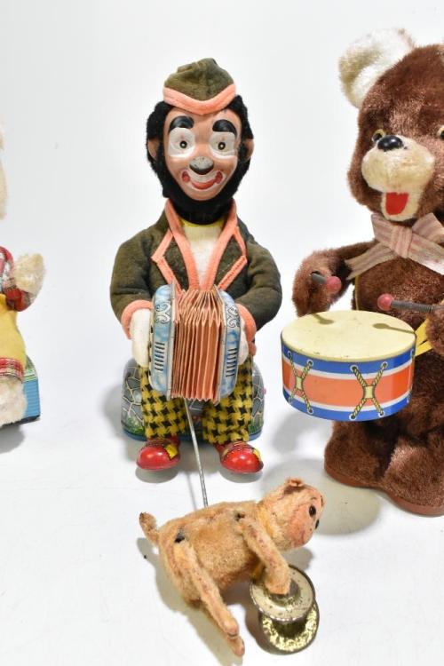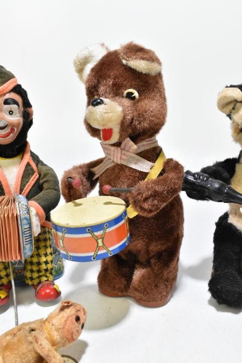 Lot 1224 of 2131: A group of assorted battery operated plush mechanical animals, including a Litho bear by Masudaya Japan, etc (5).