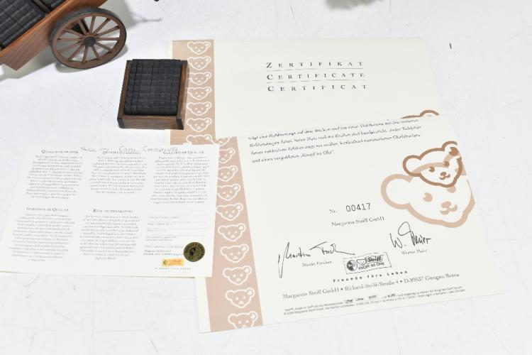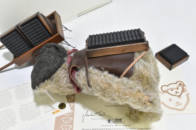 Lot 1241 of 2131: STEIFF; a limited edition Coal Carrier teddy bear, number 00417, with certificate and cart.