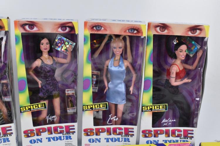 Lot 1257 of 2131: SPICE GIRLS; a set of five Galoob collectors' dolls in original boxes, together with a set of five Take That dolls in original boxes (10).