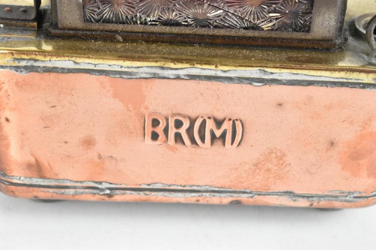 Lot 1266 of 2131: Two scratch built steam engines, one example raised on stained pine plinth base, length 35cm, also a copper railway lamp (3).