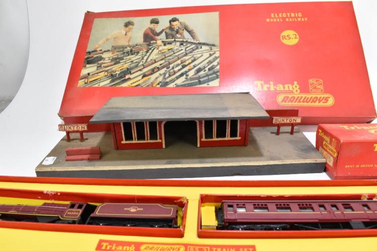 Lot 1316 of 2131: TRI-ANG; a 00 Gauge RS2 electric model railway set, with assorted accessories including scale models, open wagons, power controller, also a model Buxton railway station.