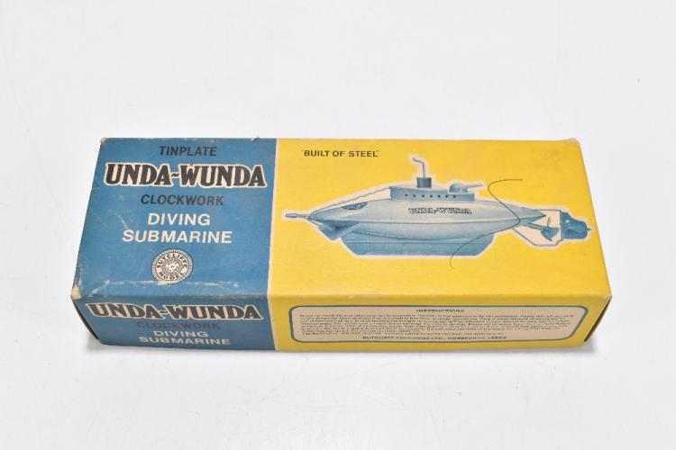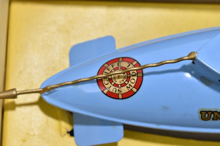 Lot 1324 of 2131: SUTCLIFFE ENGLAND; a boxed tin plate Unda-Wunda clockwork submarine, boxed.