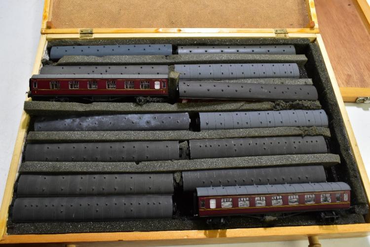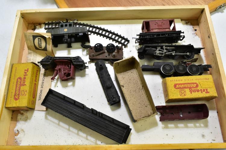 Lot 1340 of 2131: A quantity of H0 Gauge model railway items contained within a five drawer cabinet including six locomotive, various tenders, carriages, coal wagons, etc, also eight carved coal models.