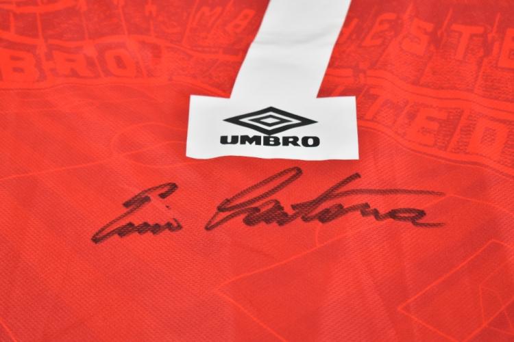 Lot 1382 of 2131: ERIC CANTONA; an Umbro Manchester United 1994-96 season retro reproduction home shirt, signed with ‘Cantona 7’ to reverse, size XL.
