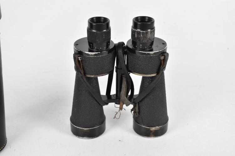 Lot 1439 of 2131: A pair of German 7 x 50 binoculars serial no.23628N 330212KF and engraved with Third Reich logo to the binoculars and to the associated case.
