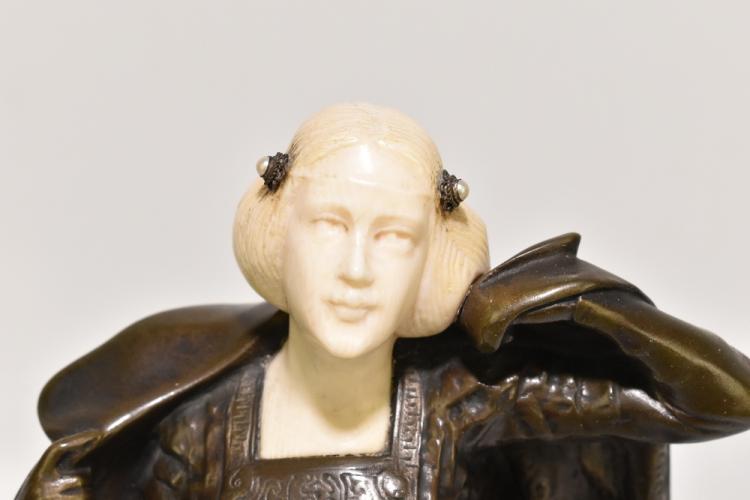 Lot 1525 of 2131: ANTON ENDSTORFER (AUSTRIAN 1880-1960); a bronze and ivory figure of a young woman wearing a cloak set on a green marble base, signed, height 36cm. (D)