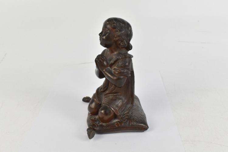 Lot 1542 of 2131: AFTER M MOREAU; a reproduction cast bronze figure of a girl kneeling on a cushion, with cast signature, height 14cm.