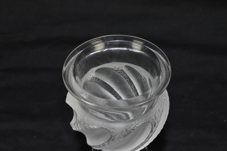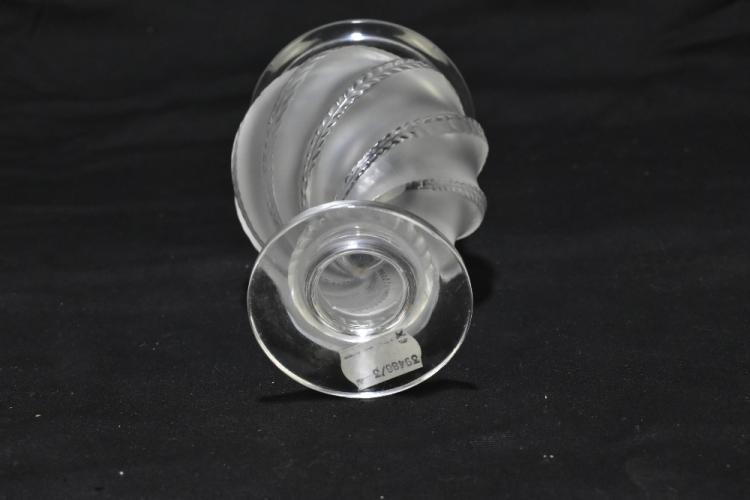 Lot 1621 of 2131: LALIQUE; a clear and opaque glass vase with wrythen moulded fluted central section, engraved mark to base 'Lalique, France', height 15cm.