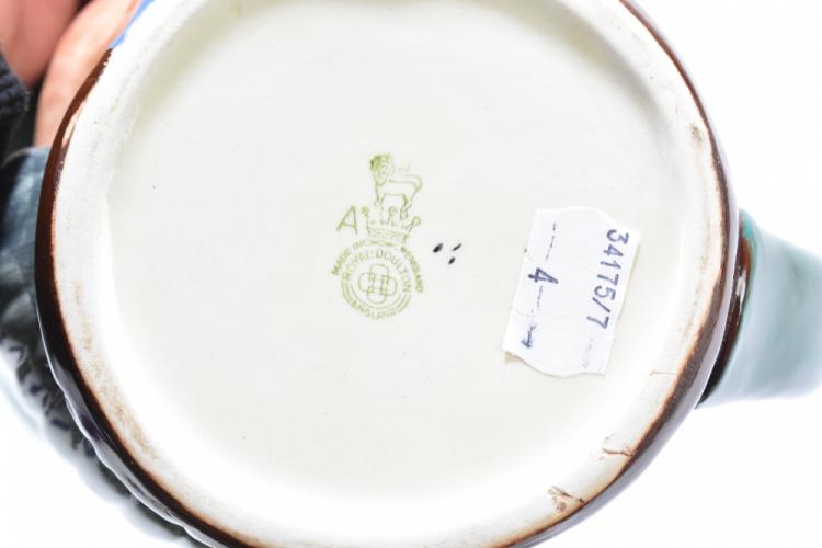 Lot 1634 of 2131: ROYAL DOULTON; two character jugs comprising Winston Churchill and Sir John Falstaff, also two large Royal Doulton character jugs, comprising Sairey Gamp and Toby Philpotts (4).