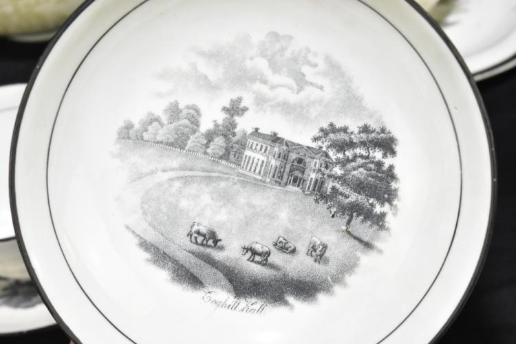 Lot 1721 of 2131: An early 19th century New Hall type fifteen part tea service, decorated with romantic ruins and rural scenes (15).