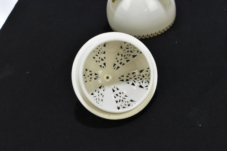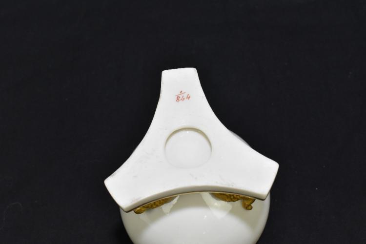 Lot 1743 of 2131: An unmarked Royal Worcester potpourri gilt heightened cream ground bowl and cover raised on three stylised serpent supports to tripartite base, painted no.14/844 to base, height 15cm.