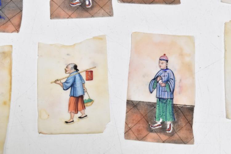 Lot 1830 of 2131: Seventeen Chinese pith paper watercolours of figures in various domestic and occupational pursuits, each unframed, the tallest 9.5cm.