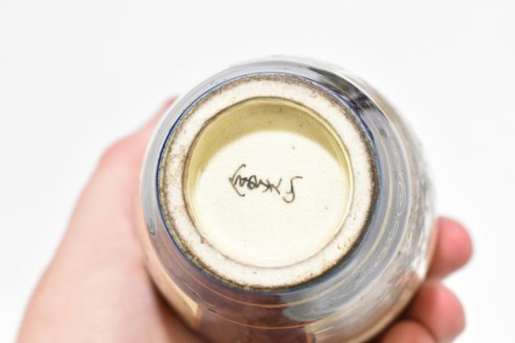Lot 1847 of 2131: Three pairs of Japanese Satsuma vases with gilt heightened decoration cobalt blue grounds, a similar single vase and a small koro and cover, largest vase height 12.5cm.