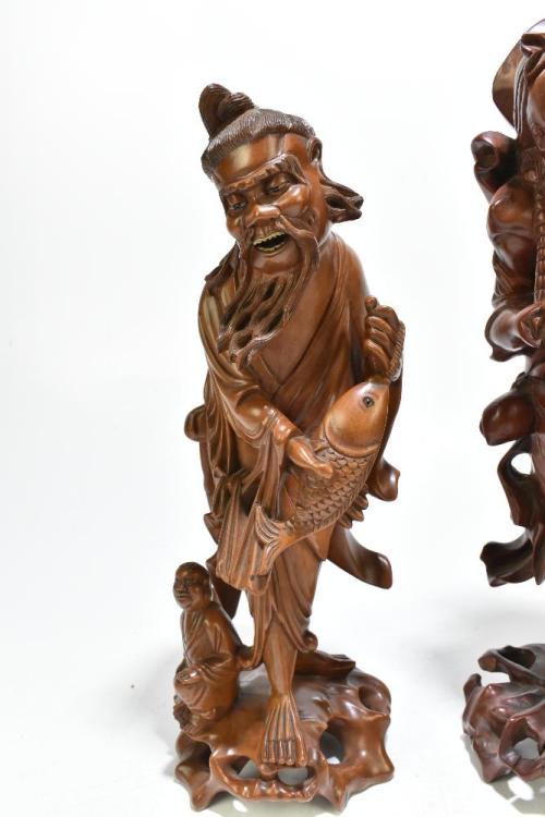 Lot 1858 of 2131: Two Chinese carved rootwood figures of elders, raised on naturalistic plinth bases, height of larger 42cm (2).
