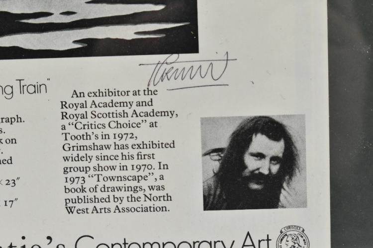 Lot 2006 of 2131: TREVOR GRIMSHAW (1947-2001); a small black and white print for the image 'Approaching Train', signed by the artist, 20 x 14cm in clip glazed frame. (D)