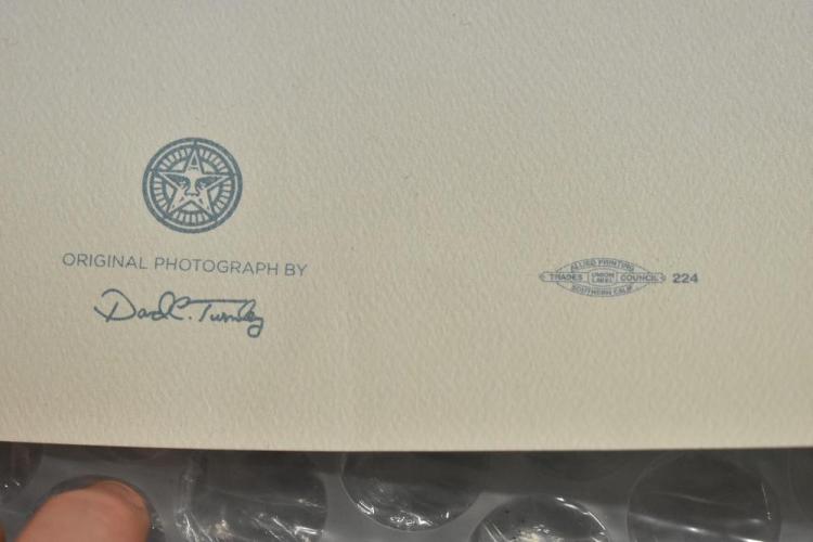 Lot 2021 of 2131: ***WITHDRAWN***AFTER SHEPARD FAIREY; offset lithograph on thick textured stock, 'Vote Obama '08', from the 'Art for Obama' Presidential Campaign fundraiser poster series, numbered 2863/5000, with 'Paid for by Obama for America' and further related stamps to lower border, 66x56cm, sheet size 97.8cm x 63.5cm Provenance: From a private North West collector