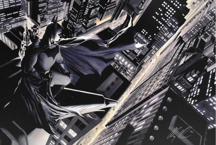 Lot 2055 of 2131: ALEX ROSS; signed limited edition print, ‘Batman: Night Over Gotham’ 40/49, 97 x 66cm, framed.