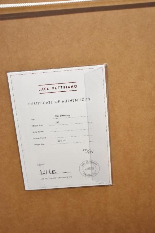 Lot 2058 of 2131: JACK VETTRIANO; signed limited edition print, ‘Altar of Memory, 233/295, 43 x 54cm, framed and glazed. (D)