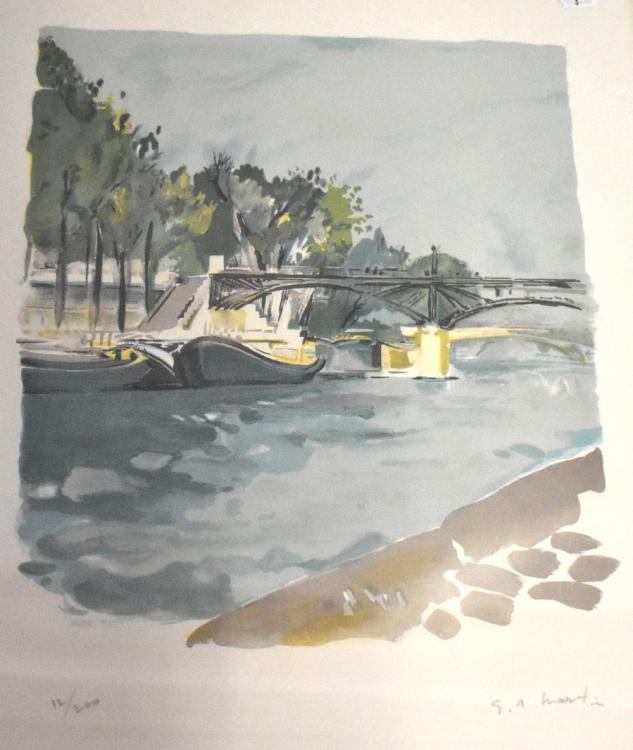 Lot 2061 of 2131: F. HILON; signed limited edition coloured print, landscape, no.141/150, 37 x 47cm, and two further decorative prints, all framed and glazed (3). (D)