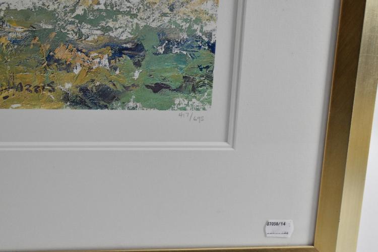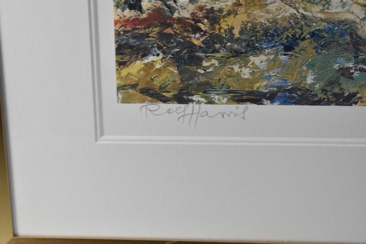 Lot 2081 of 2131: ROLF HARRIS (born 1930); a signed limited edition coloured print, 'Blue Hills', no.417/695, with certificate of authenticity, 35 x 44cm, framed and glazed. (D)