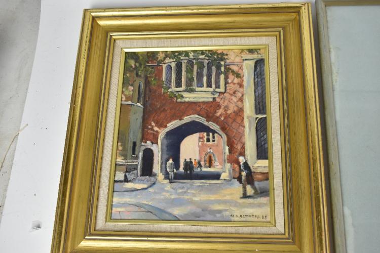 Lot 2149 of 2131: MARJORIE J ALTARAS; oil on board, 'Lincoln's Inn', signed and dated '85 lower right, 29 x 24cm, also a print by the same artist (2). (D)