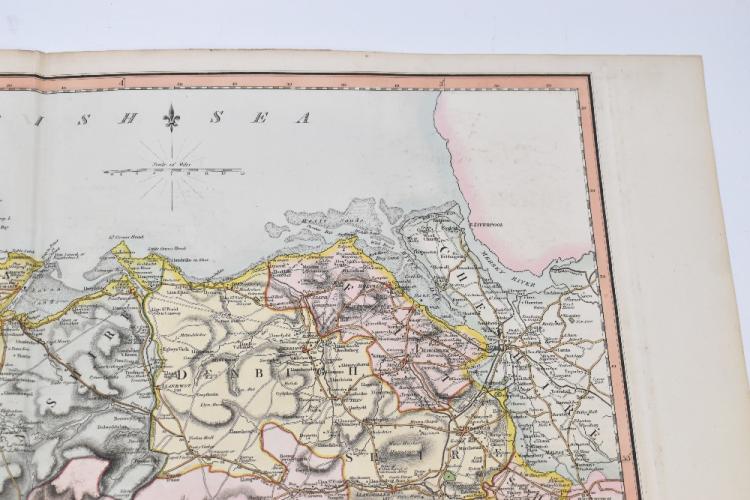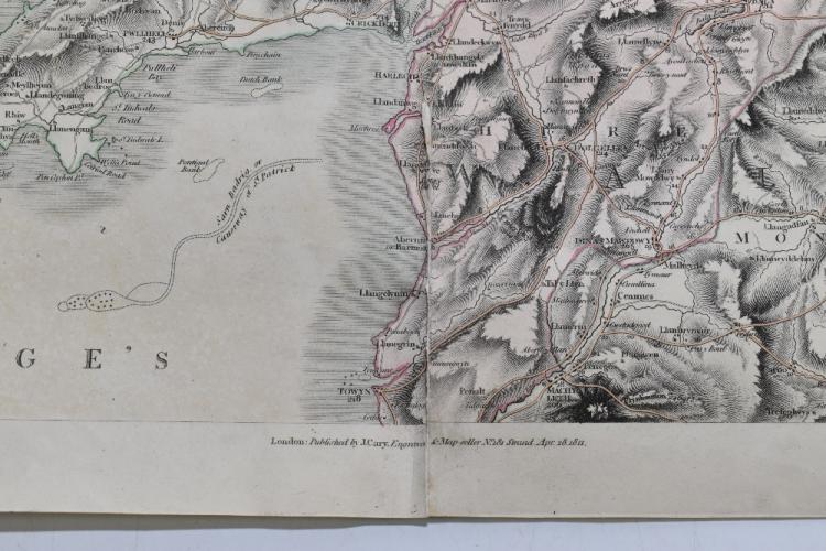 Lot 2162 of 2131: A NEW MAP OF NORTH WALES; a 19th century Thomas Dix engraved map with hand coloured detailing, dated 1820, 59 x 82cm, with a John Cary map of North Wales, both unframed (2).