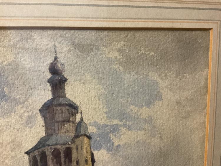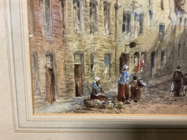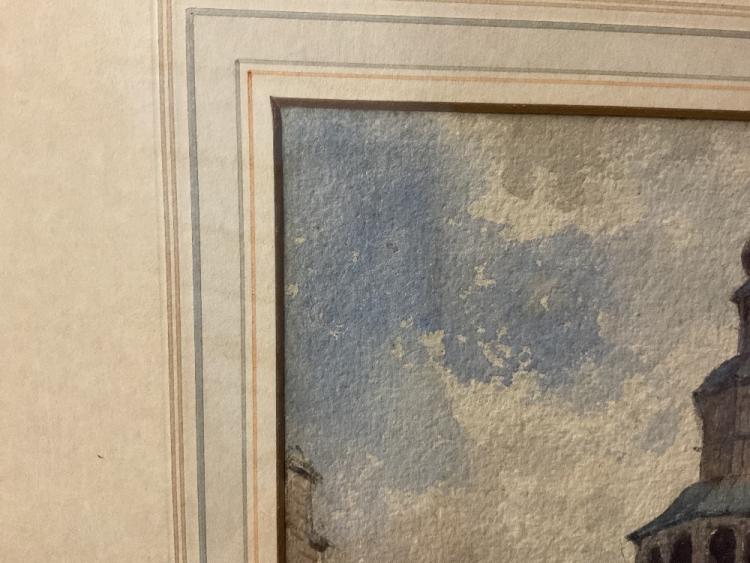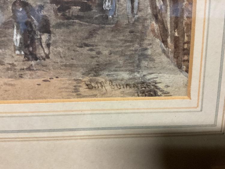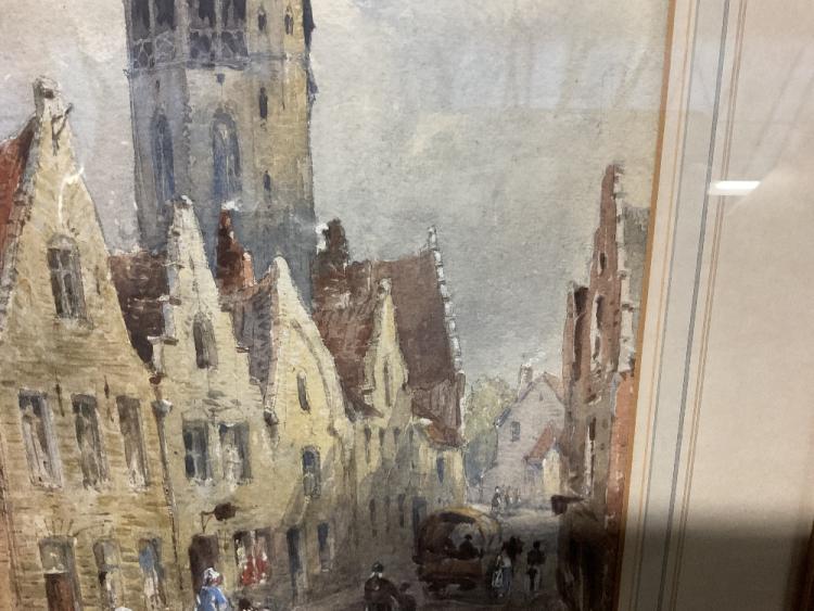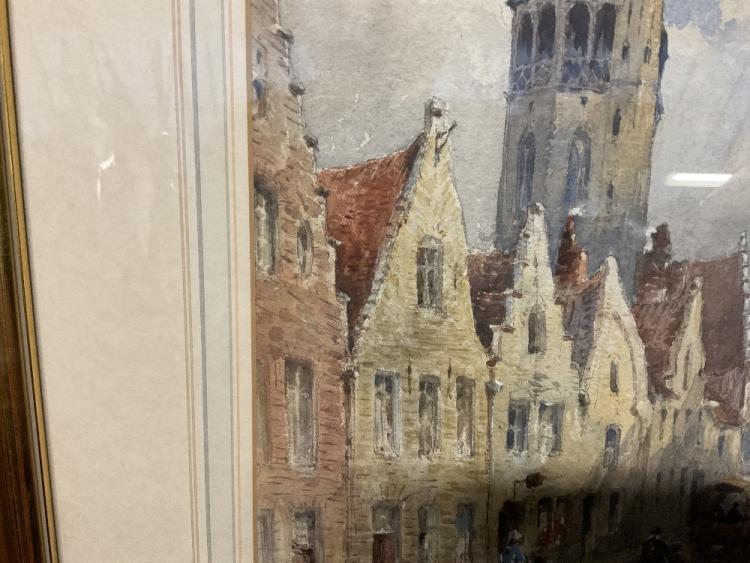 Lot 2201 of 2131: BINGHAM MCGUINNESS (1849-1928); watercolour, ‘A Street in Bruges & a Church of Jerusalem’, signed and dated 1881, 34.5 x 24.5cm, framed and glazed.