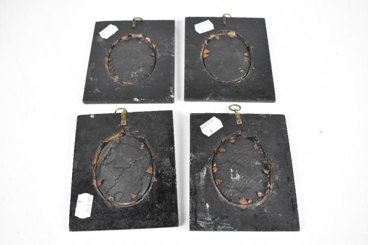 Lot 2218 of 2131: Four 19th century portrait miniatures on ivory depicting portraits of children holding various items including doll, kitten, cockerel and a dog, each in lacquered frames, 8 x 7cm (4).