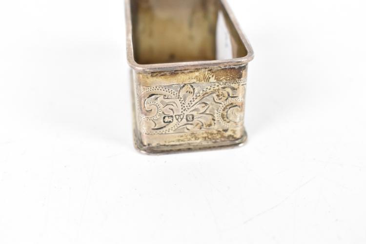 Lot 2278 of 2131: GOLDSMITHS & SILVERSMITHS; a Victorian hallmarked silver cigarette box of rectangular form with applied initial to the cover, with cedar wood interior, London 1891, with a hallmarked silver napkin ring (2).