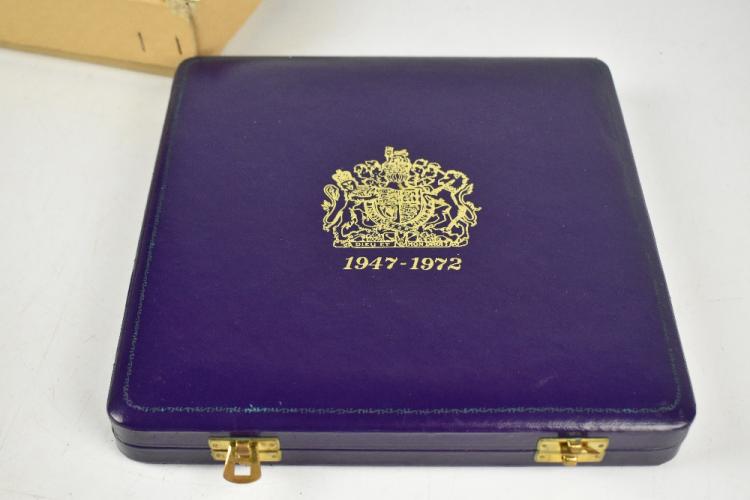 Lot 2346 of 2131: An Elizabeth II hallmarked silver commemorative plate produced to commemorate the Silver Wedding Anniversary of Her Majesty the Queen and His Royal Highness Prince Philip 1972, Birmingham 1972, no.1041/3500, boxed with certificate.