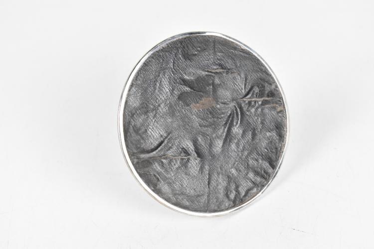Lot 2381 of 2131: A & J ZIMMERMAN; an Edwardian hammered hallmarked silver Capstan inkwell, with clear glass liner, Birmingham 1906, diameter 14m.