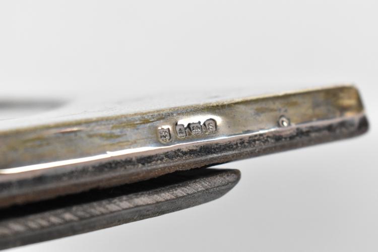 Lot 2385 of 2131: A George V hallmarked silver mounted stained wood photograph frame, of oval form, Birmingham 1917, height 26cm.