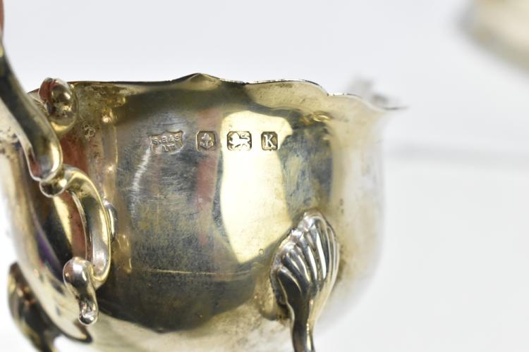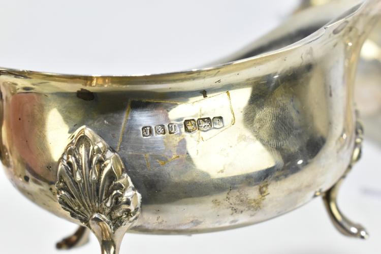 Lot 2395 of 2131: Four hallmarked silver sauce boats, Birmingham 1894, London 1915, Sheffield 1923 and Birmingham 1934, combined approx 17ozt/528.9g.
