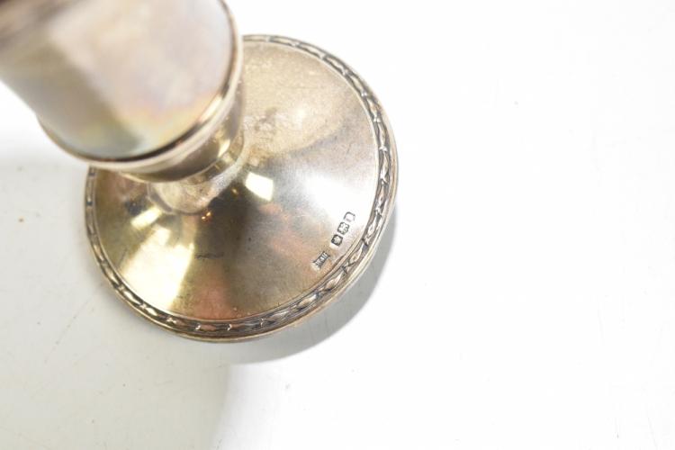 Lot 2411 of 2131: Six assorted hallmarked silver posy vases, including two pairs, one pair by Walker & Hall, Sheffield 1923, also a hallmarked silver napkin ring (7).
