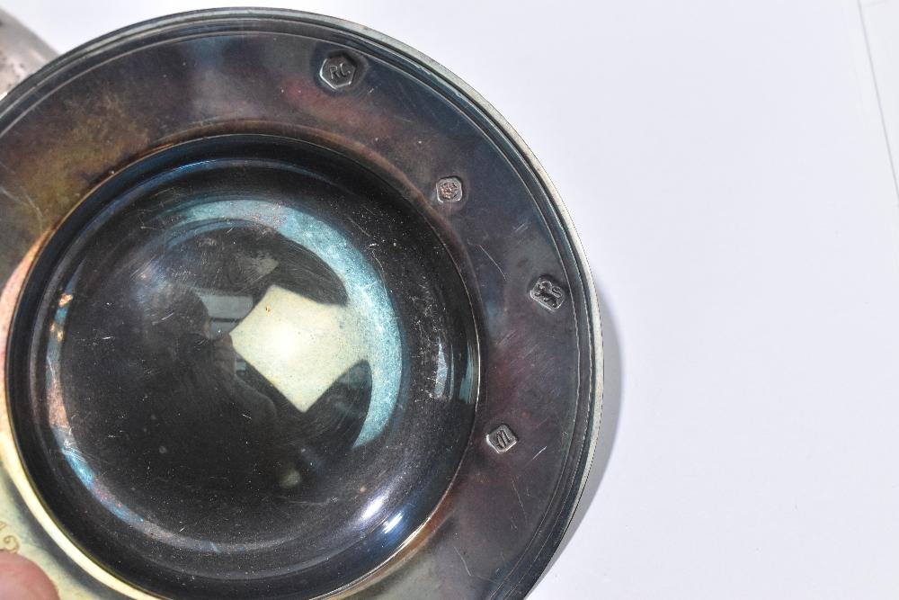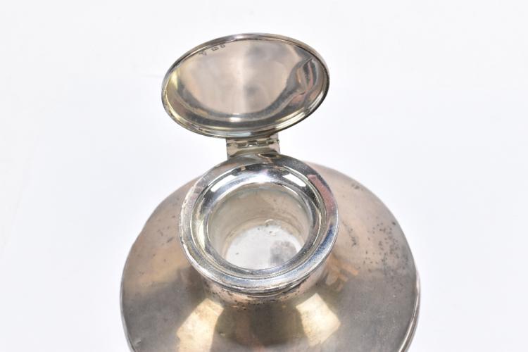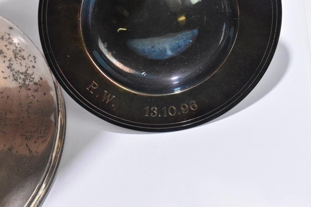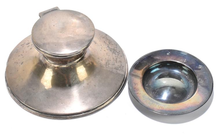 Lot 2422 of 2131: A hallmarked silver capstan inkwell and a small circular dish (2).