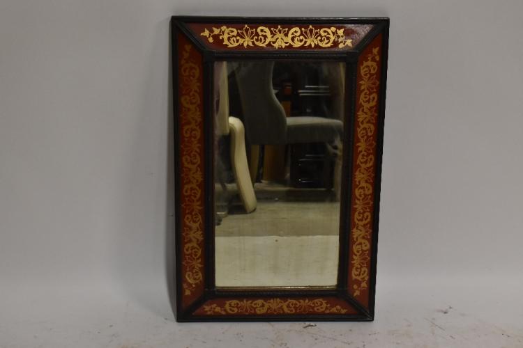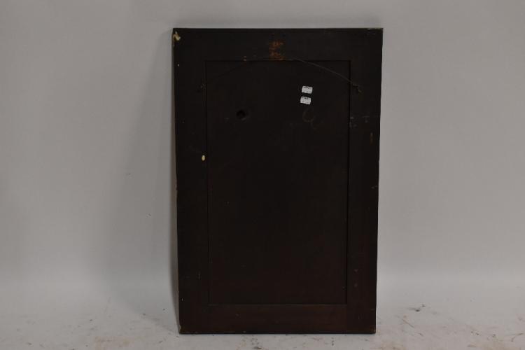 Lot 2751 of 2131: A Victorian stained oak and coloured glass rectangular wall mirror, dated 1891, the outer border decorated with scrolling acanthus leaves against and red ground, 80 x 52.5cm.