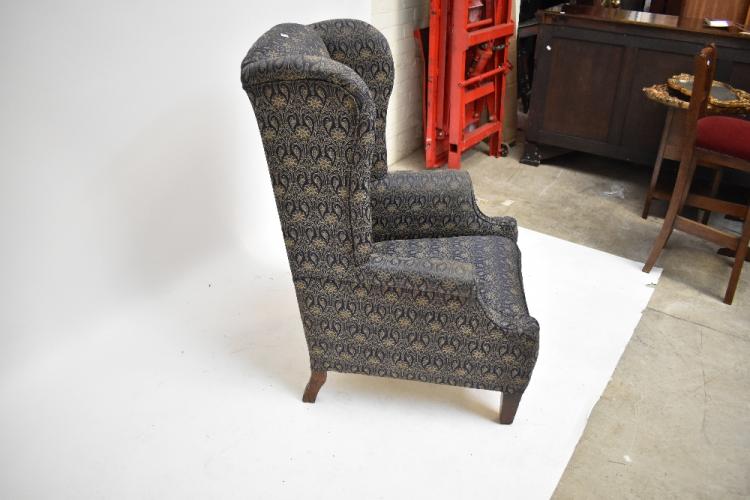 Lot 2791 of 2131: An Edwardian wing back armchair raised on square section tapering front legs.