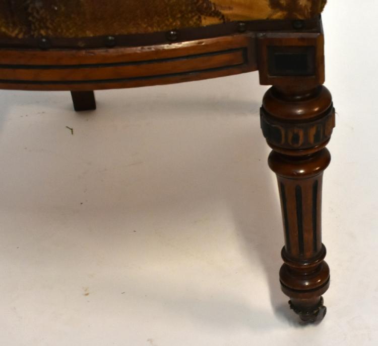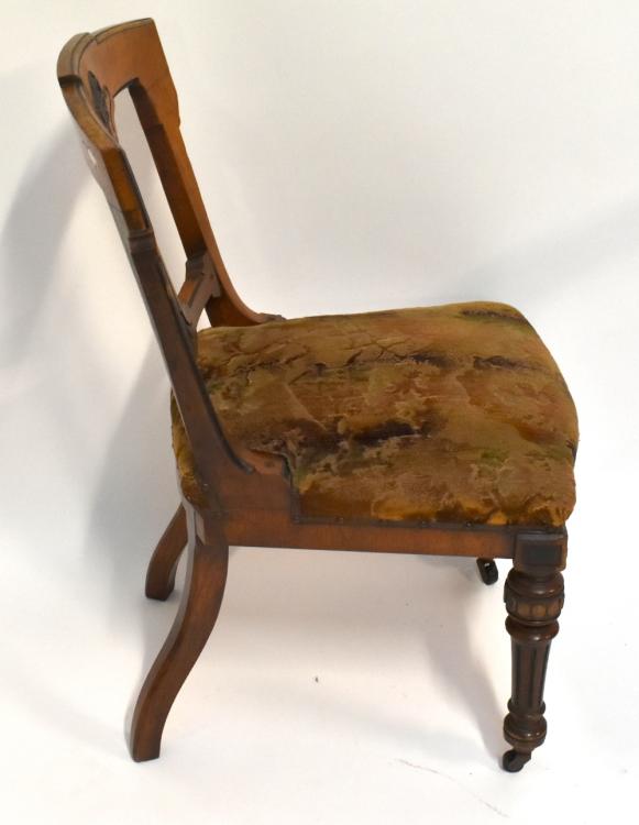 Lot 2803 of 2131: A set of four late Victorian oak dining chairs, with upholstered seats on turned and carved legs, height 90cm.