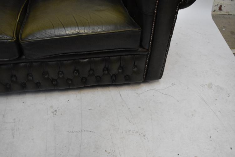 Lot 2883 of 2131: A modern green leather Chesterfield settee, with button back and arms and button front, height 67cm, width 207cm, depth 94cm.