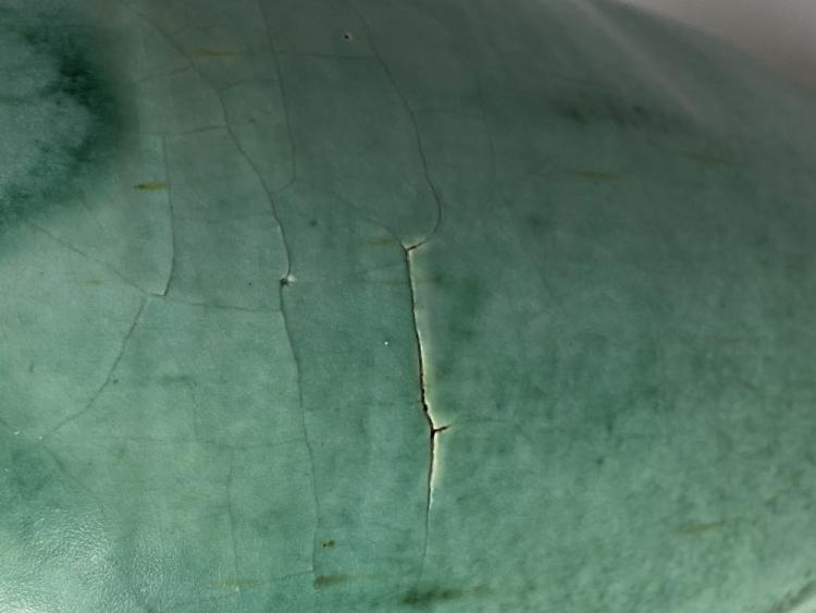 Lot 6 of 493: REGINALD FAIRFAX WELLS (1877-1951) for Coldrum Pottery; a stoneware vase covered in mottled green glaze, impressed pottery mark, height 21.5cm. (D) Provenance: The Nancy & Andrew Ramage collection.