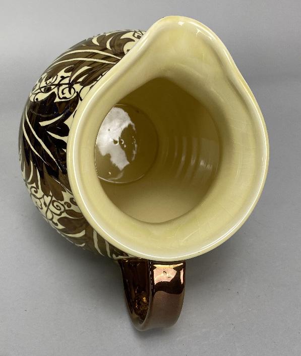 Lot 13 of 493: GORDON FORSYTH (1879-1952); a white earthenware jug, copper lustre on honey glaze, painted mark and Royal Winton Grimwades stamp, height 20cm. (D)