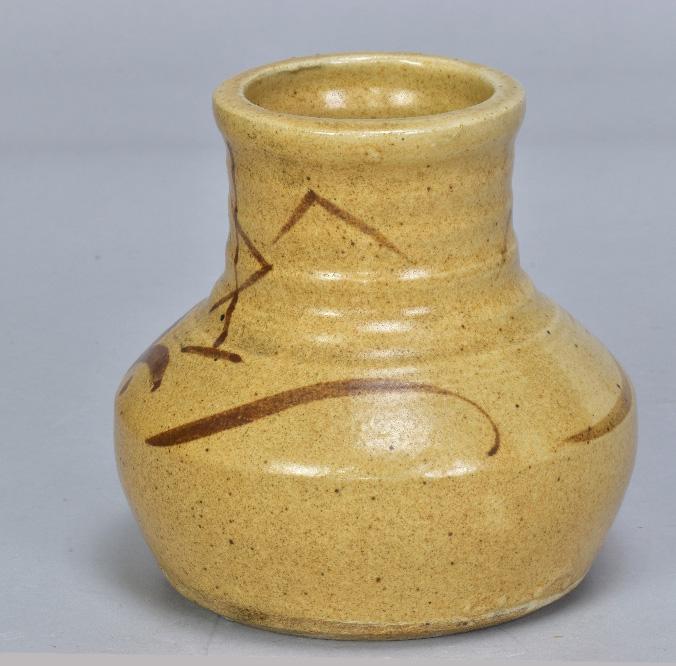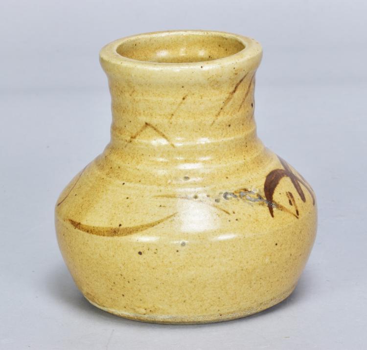 Lot 15 of 493: WILLIAM STAITE MURRAY (1881-1962); a stoneware vase with iron brushwork on oatmeal ground, impressed M mark and incised and painted number/year marks, height 12.5cm. (D)