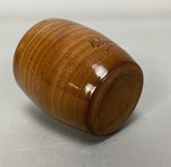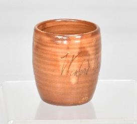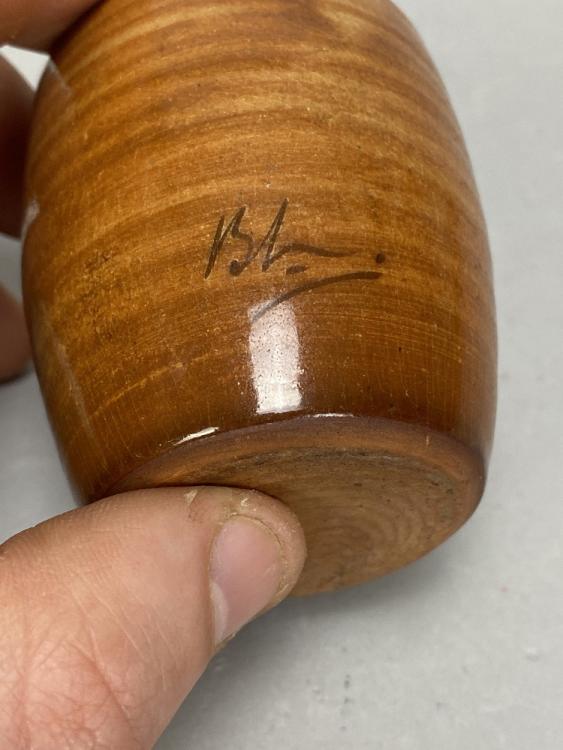 Lot 16 of 493: BERNARD LEACH (1887-1979); a small slipware pot, painted BL mark and inscribed 'Wenford Bridge Pottery 1948', impressed mark (but not Wenford or Leach), height 6cm. (D) This simple pot was made and decorated by Leach during a visit to Michael Cardew's Wenford Bridge Pottery after Cardew had returned to Britain from Africa in 1948. Provenance: The Nancy & Andrew Ramage collection; purchased from Cheddington Studio Pottery.
