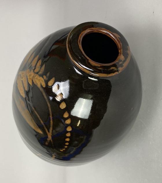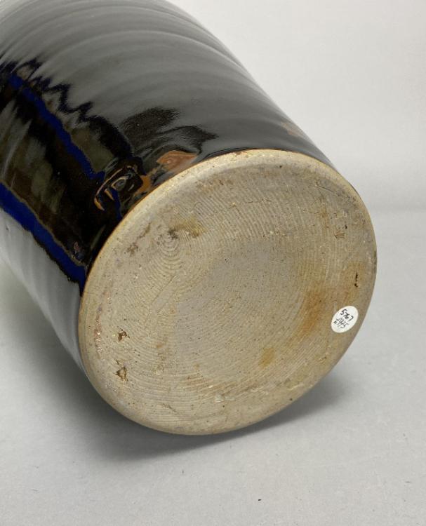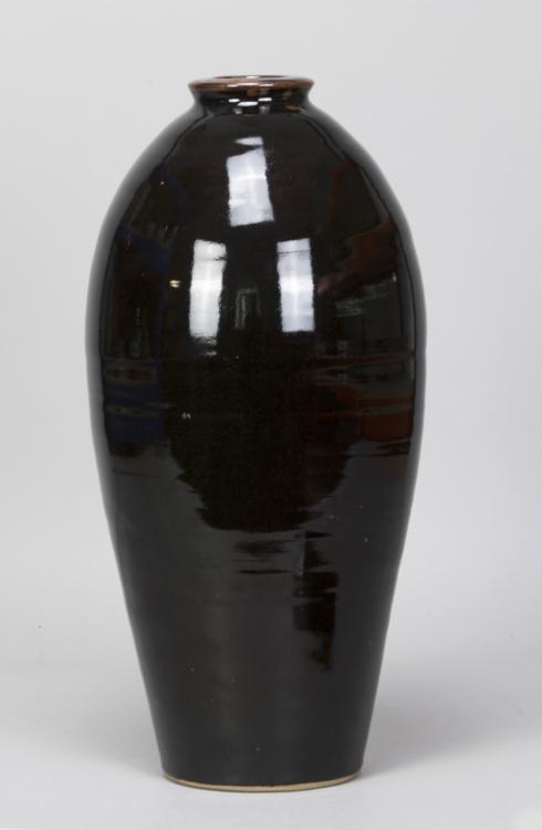 Lot 49 of 493: DAVID LEACH (1911-2005) for Lowerdown Pottery; a tall stoneware bottle covered in tenmoku glaze with foxglove motif picked out in kaki, impressed DL mark, height 41.5cm. (D) Provenance: The Nancy & Andrew Ramage collection; purchased from Oxford Ceramics Gallery.